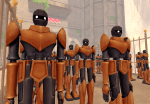 Hey guys! Peet just finished putting the final touch on the first enemy (the bronze robot). This basic enemy will be equipped with a puny axe and shield; our robot hero should have no problem “taking care” of him. In other news, we now have a twitter page and a book face page. So yes, we are hip and cool so please follow us :D