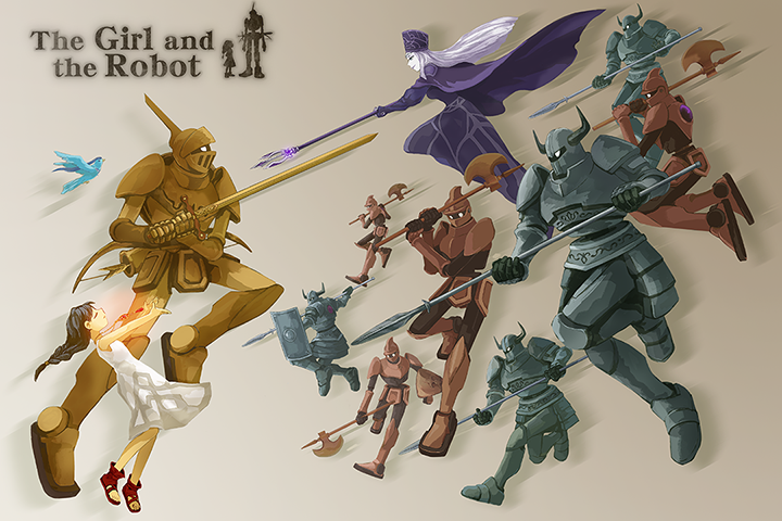 The theme of the contest is anything related to The Girl and The Robot. It can be serious, funny, abstract, anything! For character references, you can check out Peet’s posts here and there.